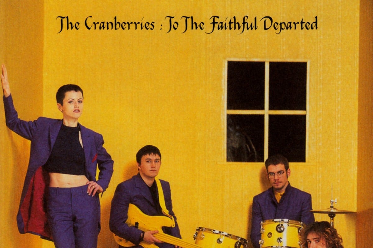 A lot of stock is put into the sophomore slump, can a successful band or artist keep the momentum going from a smash first record? often a second record has so much weight put on it that bands crack under the pressure and rush and release sloppy unfinished records that completely turn off their audience. But i think just as much emphasis can be put on a third record’s success. The band has made two successful records but hasn’t necessarily cemented itself in the zeitgeist as a band worth continuing to listen to for years to come, They may feel the need to experiment with their sound to appeal to a wider audience and completely alienate their base. A third record can make or break a band’s reputation for years to come, and The Cranberries’ third offering, To The Faithful Departed, manages to toe the line spectacularly. Partially a eulogy to the man who got them signed and the lead singer, Dolores O’Riordan’s grandfather who passed between the making of their last record it muses on the lives these men led, what people who leave us offer us after their passing, and the tribulations that came with the band’s continued success. O’Riordan’s siren voice still calls to listeners with heartbreaking lyrics about loss and success all tied into a neat yellow melancholy bow.